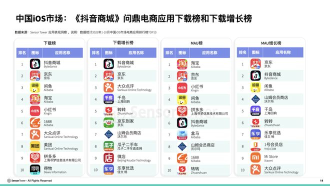 在中国iOS市场,《抖音商城》表现抢眼,成功问鼎电商应用下载榜和下载增长榜双料冠军。凭借丰富的短视频内容与购物场景的深度融合,平台不仅吸引了海量新用户下载,更激发了活跃用户的持续参与。高效的推荐算法与个性化购物体验,使《抖音商城》在竞争激烈的电商市场中脱颖而出,成为品牌推广和用户转化的重要渠道。