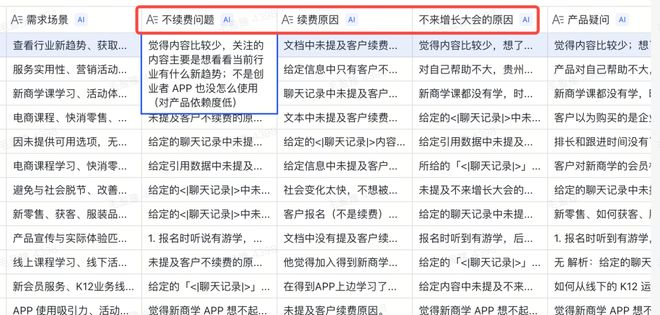 在飞书多维表格助力下,得到搭建了一套自动化流程。排长只需在群里发送一条语音,飞书便能自动抓取信息至表格,随后由AI自动识别和提取关键信息、分类打标,其多维表格甚至能自动提炼分析客户续费原因,为排长提供决策建议。系统上线仅一个月,团队整体效率便提升了一倍。
