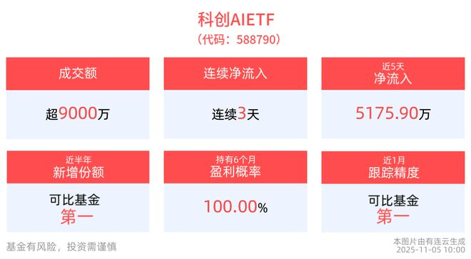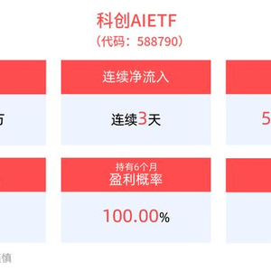 从资金净流入方面来看,科创AIETF近3天获得连续资金净流入,最高单日获得8536.36万元净流入,合计“吸金”1.24亿元,日均净流入达4141.58万元。