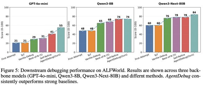 实验表明,AgentDebug 的这种「根因修复」策略显著优于传统的「反思 — 重试」方法。