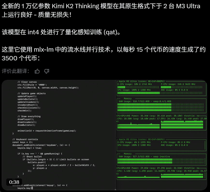 肉眼可见的特色是这个K2 Thinking 模型可以持续多轮「一边搜索一边思考」,这是目前 DeepSeek 也不具备的能力,另外由于 INT 4 量化,万亿级的参数也不用耗费大量资源进行推理。