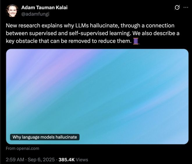「这正是模型虽然日益进步但仍会产生幻觉,即自信给出错误答案而非承认不确定性的重要原因」。