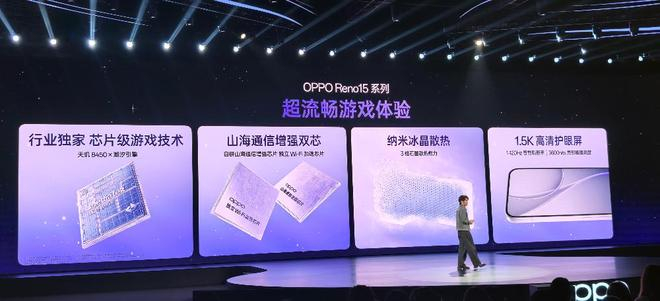此外,OPPO Reno15系列搭载天玑8450芯片,搭配潮汐引擎,采用纳米冰晶散热片与高导热冰封石墨散热贴散热。