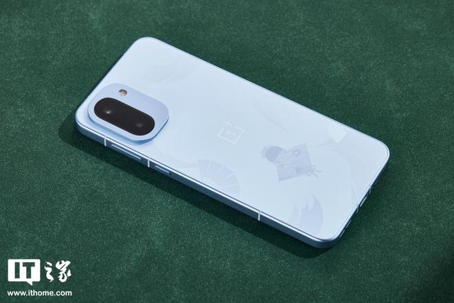 一加 Ace 6T 原神神里绫华定制机机身采用「雪霁蓝」主题配色,低饱和度的冰蓝色搭配细腻的玻璃材质,手感非常光滑。后壳底部印有绫华头像 + 舞扇的图案装饰,四周还有多组拼接图案,背盖图案在光线下能够呈现如皎月清霜般的光泽,还原绫华月下剑舞般的灵动光影,细细品味亦能感受出神里绫华的端庄气质。