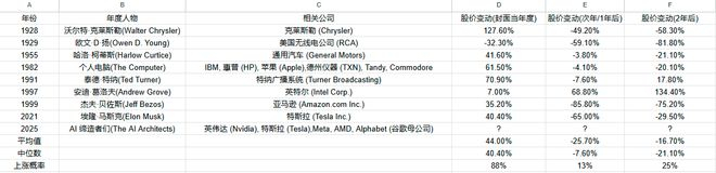 据Donnelly统计,与年度人物相关的投资趋势或公司,仅有13%在一年后表现更佳,两年后这一比例也仅堪堪升至25%。