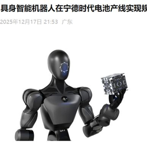 最新的一个里程碑事件来自电池巨头宁德时代。据宁德时代官方消息,近日,全球首条实现人形具身智能机器人规模化落地的新能源动力电池PACK生产线,已在其公司的中州基地正式投入运行。这款名为“小墨”的人形机器人,目前已能精准完成电池包下线前带有高压风险的最终功能测试工序。