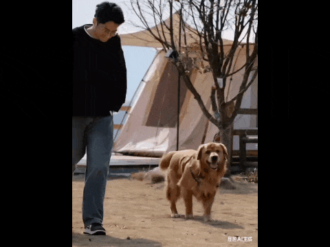 我们丢给它一张火锅近照,并直接跟豆包讲:“让图中的金毛进入水坑跑一圈。”