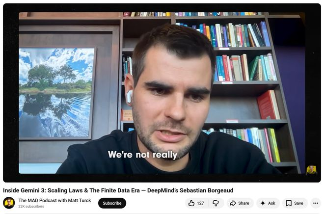 Sebastian Borgeaud是Gemini 3的预训练负责人。