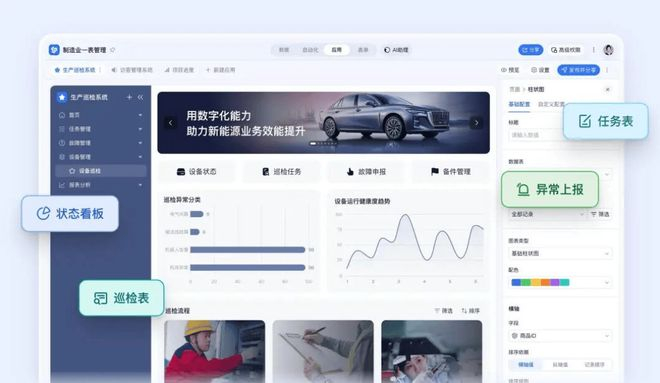 业内首创的「万能贴」功能,能够把乱七八糟的截图、网页复制进去,两秒钟变结构化数据。更夸张的是「AI APP」模式,拍一张手绘草图,AI 直接给你生成一个带仪表盘、带权限管理的完整 CRM 系统。