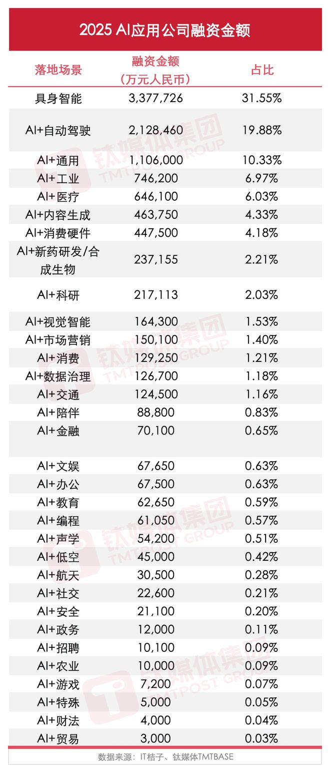 2025年AI应用公司融资规模TOP 20榜单,清晰勾勒出资本的偏好。