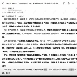 然而,现实的反转来得比抖音短剧还快。近日超聚焦独家获悉,顺丰内部通知显示,原本要在1月7日画上句号的抖音顺丰合作,在最后时刻被按下了“续约键”。经双方高层紧急“对齐”,合同直接顺延到了2026年底。