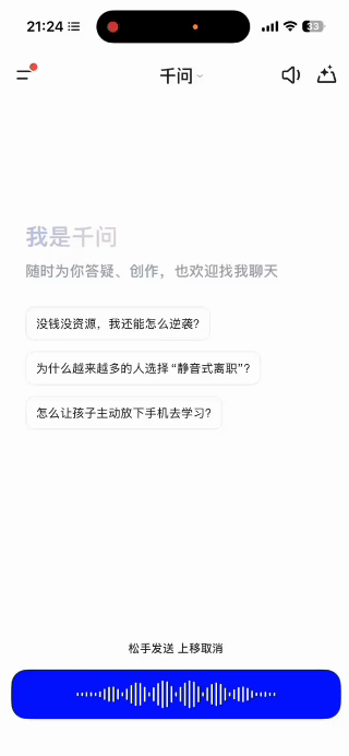 值得一提的是,我们不仅可以通过打字输入的方式给AI下指令,还可以通过「语音」的方式吩咐千问办事儿: