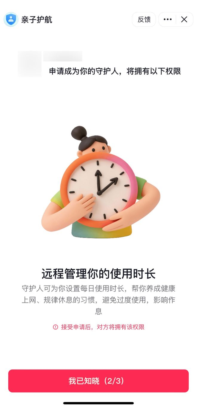 抖音表示,“亲子护航”功能以“轻量管理 温情陪伴”为理念,力图打造平等、尊重的协同守护体系,通过智能识别与柔性引导,缓解家长对孩子用网安全的焦虑,守护未成年人成长过程中的独立意识与探索需求,让监护不再是单向的约束,而是双向的理解与支持。