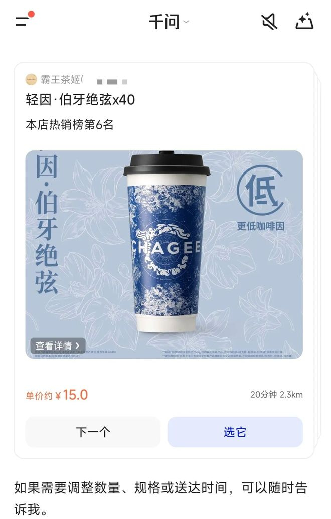 北京商报记者体验发现,通过千问App,只需下达一句具体的点单需求,用户在绑定闪购账号,并同意开通AI付后,千问App可直接调用淘宝闪购下单,无需任何跳转即可在端内点外卖。在这个过程中,用户还可以向千问App提出“推荐更便宜”“推荐某口味”等需求,千问App还会秒级回复关于是不是热饮等疑问。从提出需求、咨询商品、更换商品到绑定账户、同意AI付、下单,不到一分钟。