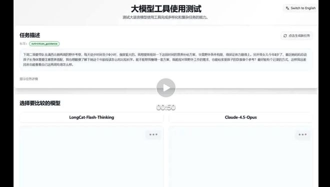 最后,我们再来测试一下 LongCat-Flash-Thinking-2601 模型主打的Agent 能力,其中的核心便是工具调用。