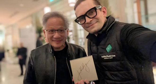 他还晒出了团队与英伟达CEO黄仁勋的合影,并表示:“很高兴能够作为AI生物制药领域前沿贡献者,得到长期合作伙伴和好朋友黄仁勋的肯定。”会议期间,黄仁勋赠予英矽智能一块签名版NVIDIA DGX Spark AI计算机。