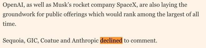 不过,外媒报道各大资本和Anthropic等均拒绝置评。
