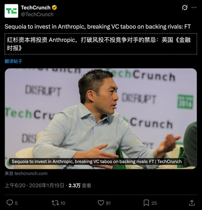 2026年1月18日,《金融时报》爆出一则重磅消息:红杉资本将参与Anthropic的新一轮融资。