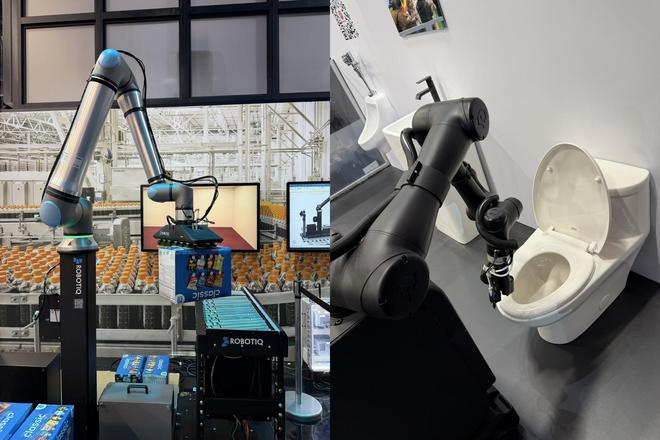 逛展过程中,雷科技 CES 2026 报道团成员也看到了新加坡的可以清洁马桶、洗手台等家庭卫生设施的机器人,加拿大的可以搬运货品的机器人。这些机器人只有「手」。