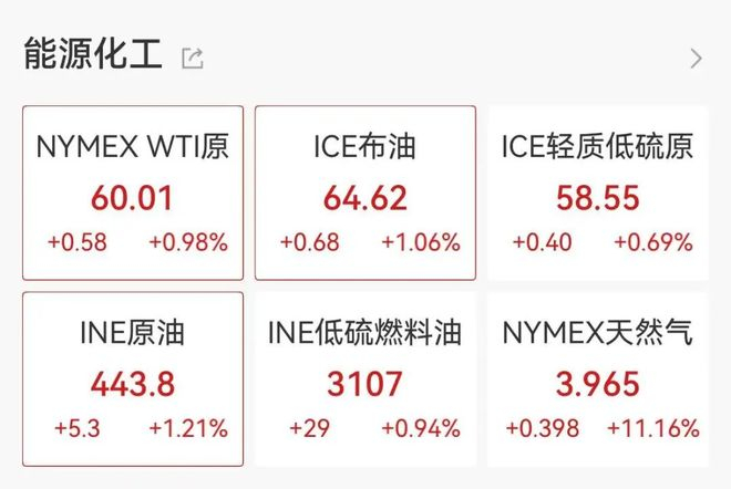 WTI原油期货向上触及60美元/桶,最新报60.04美元/桶,日内上涨1.18%。布伦特原油期货涨幅扩大至1%,报64.621美元/桶。
