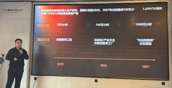 第一步,2026年以与政府/产业方合作建设数采工厂方式,实现100万小时数据产能;