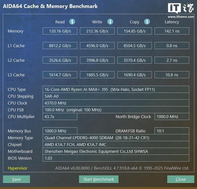 此外,铭凡 MS-S1 MAX 迷你 AI 工作站还搭载了 128GB 的 LPDDR5-8000 MT/s 统一内存架构内存,以及 2TB SSD。IT之家实测内存表现如下: