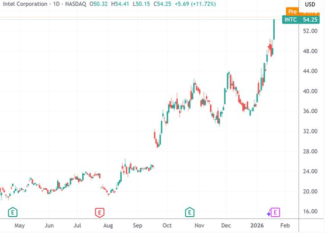 (英特尔股价今年至今已上涨47%,来源:TradingView)