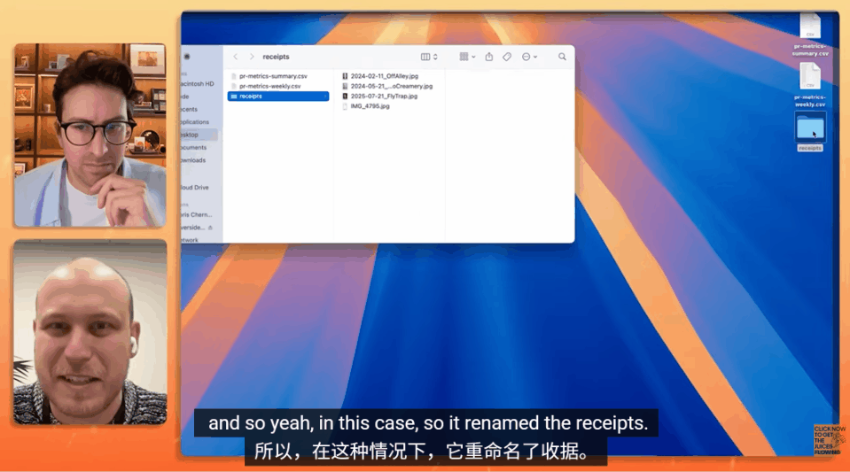 他把这个文件夹的权限开放给Cowork,然后下达指令:「把这些文件重命名一下,文件名要和收据上的日期对上。」