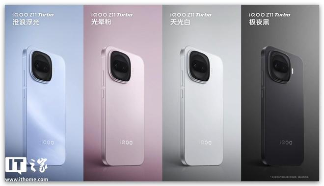 据IT之家此前报道,iQOO Z11 Turbo 手机提供沧浪浮光、光晕粉、天光白、极夜黑四种配色,屏幕支持类 DC 调光 + 4320Hz 高频 PWM 调光,局部峰值亮度可达 5000 尼特,采用满血版 LPDDR5X Ultra 内存和最新 UFS 4.1 闪存,跑分高达 359W+,标价 2399 元起。