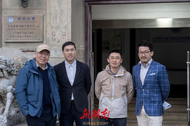 “花垣生物群”的发现和研究论文的四位作者(从左至右:朱茂炎、赵方臣、曾晗、刘琦)