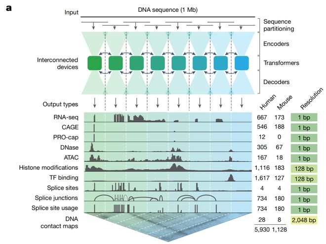 基于谷歌之前的Enformer模型,AlphaGenome这次一口气解决了上述两个痛点: