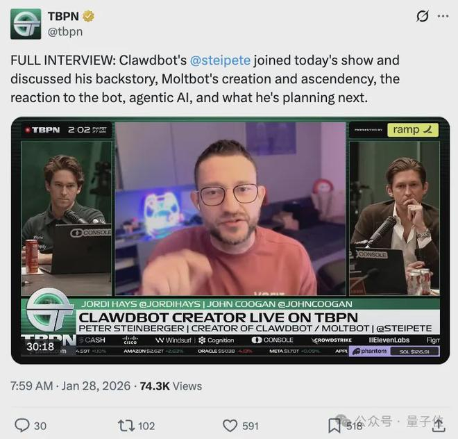 Peter最新参加了TBPN平台的直播访谈节目,回答了网友们感兴趣的一系列问题,包括Clawdbot项目起源、开发动机、发展历程、更名过程、行业影响、应用前景、安全挑战等。