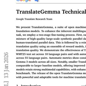 当我们在网上遇到一篇外语文章,或者想把自己的想法翻译成另一种语言时,总是希望能有一位精通多种语言的专家帮忙。如今,这个愿望正在通过人工智能技术逐步实现。Google翻译研究团队在2026年1月15日发布了一项名为TranslateGemma的突破性研究成果,这项研究的技术报告以arXiv:2601.09012v1的编号发表,标志着机器翻译领域迈出了重要一步。