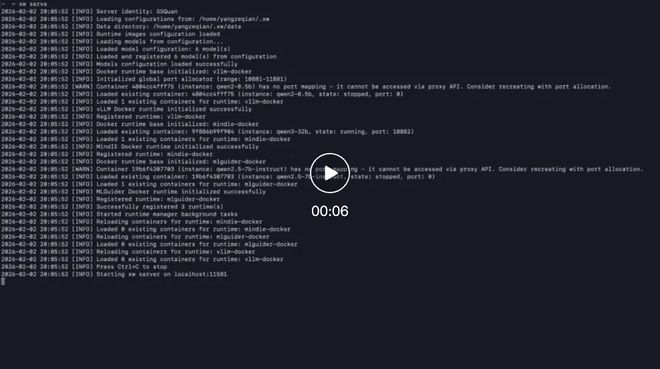 一切始于一行简洁的命令xw serve。无需复杂的环境变量配置,系统直接完成运行时配置初始化与全局端口分配,唤醒后台守护进程。