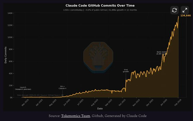 Anthropic旗下AI编程工具Claude Code已占GitHub公共代码提交量的4%,并预计到2026年底该比例将超20%。研究机构SemiAnalysis最新分析指出,Claude Code是AI“智能体”的转折点。