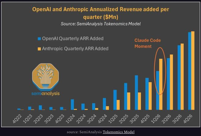 目前,Anthropic的季度年度经常性收入(ARR)增量已超越OpenAI,标志其在商业化进程上实现关键超越。这一趋势表明,在AI竞赛的下半场,算力规模与营收转化之间已形成强耦合。