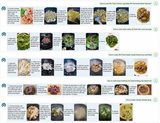 论文中展示了一个令人印象深刻的例子:给定一段烹饪视频的前两秒,Emu3可以预测接下来两秒会发生什么——锅中的食材如何翻炒(如下图),厨师的手会移向哪里,蒸汽会如何升腾。这种“世界模型”的能力,被认为是通向更高级AI的关键:一个真正理解物理世界的模型,应该能够预测行动的后果,而非仅仅记忆静态的图像-文字关联。