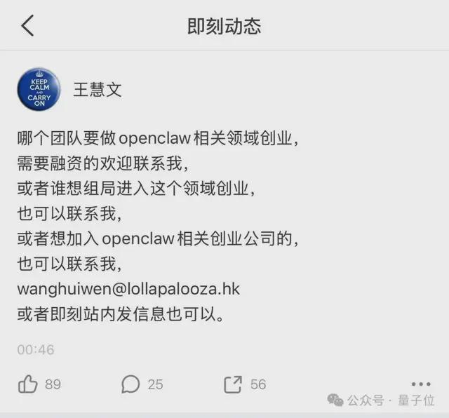 王慧文杀入OpenClaw赛道,再发英雄帖:「需要融资的欢迎联系我」
