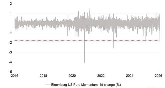 当“有钱花不出去”的风险开始被计价,金融市场的反应是剧烈的。近期,美股经历了过去十年来第四大“动量股”单日抛售。