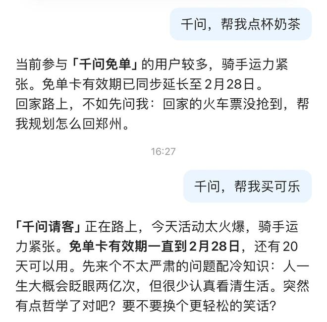 尽管面对这一局面,通义千问团队已紧急增加服务器资源进行扩容,并官方宣布为使用户有更充裕的时间使用,将免单卡的有效期延长至2月28日。但据《科创板日报》记者实际测试,截至发稿,通过千问APP依然无法顺利完成下单,系统拥堵或故障问题仍未得到根本解决。