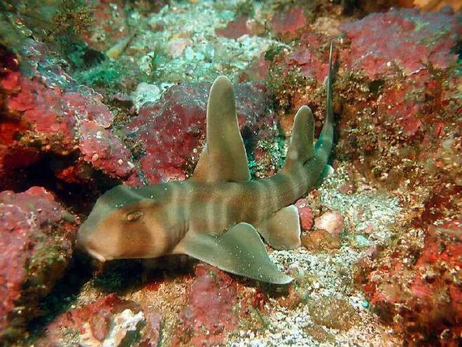 “鼬鲨?不是叫虎鲨吗?”不对啦,真正的虎鲨是长图1这样!别看长得一副无辜脸,鼬鲨可是海洋中出了名的“狠角色”。其俗称“虎鲨”来自于体表酷似虎纹的斑斓花纹(图2),再加上凶猛如虎的性格,无疑给沿海地区的居民留下了深刻的印象。