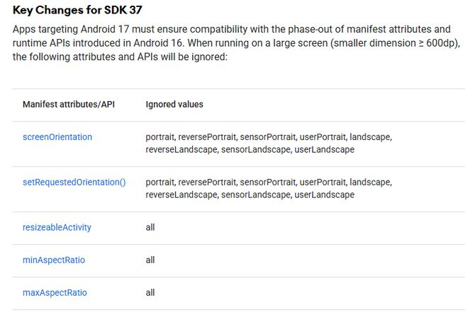 对于目标 API 等级为 37 的应用,系统将强制要求支持在多种屏幕尺寸与布局中响应式调整界面;这一变化不适用于屏幕较小的传统手机,也不影响被归类为游戏的应用。