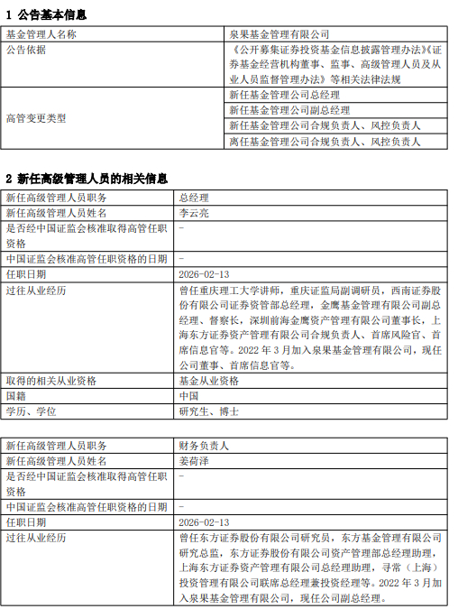 泉果基金官宣管理层变动:李云亮升任总经理 新任孙媛担任合规负责人和风控负责人