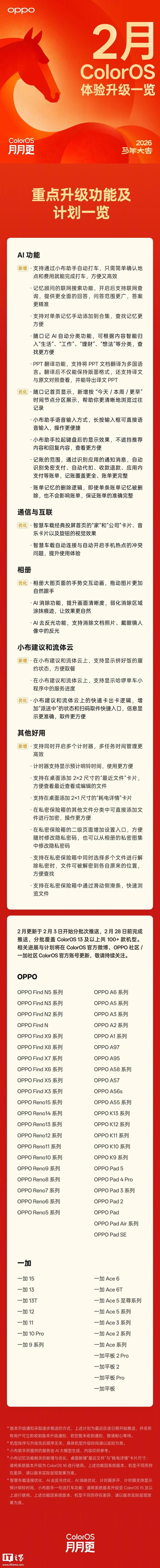 IT之家注意到,ColorOS 16 二月体验升级内容已推送,升级内容包括小布助手一句话打车、时钟支持多计时器、多种新春彩蛋、小布记忆随口记、PPT 文档翻译等功能。ColorOS 16 本月体验升级一览如下: