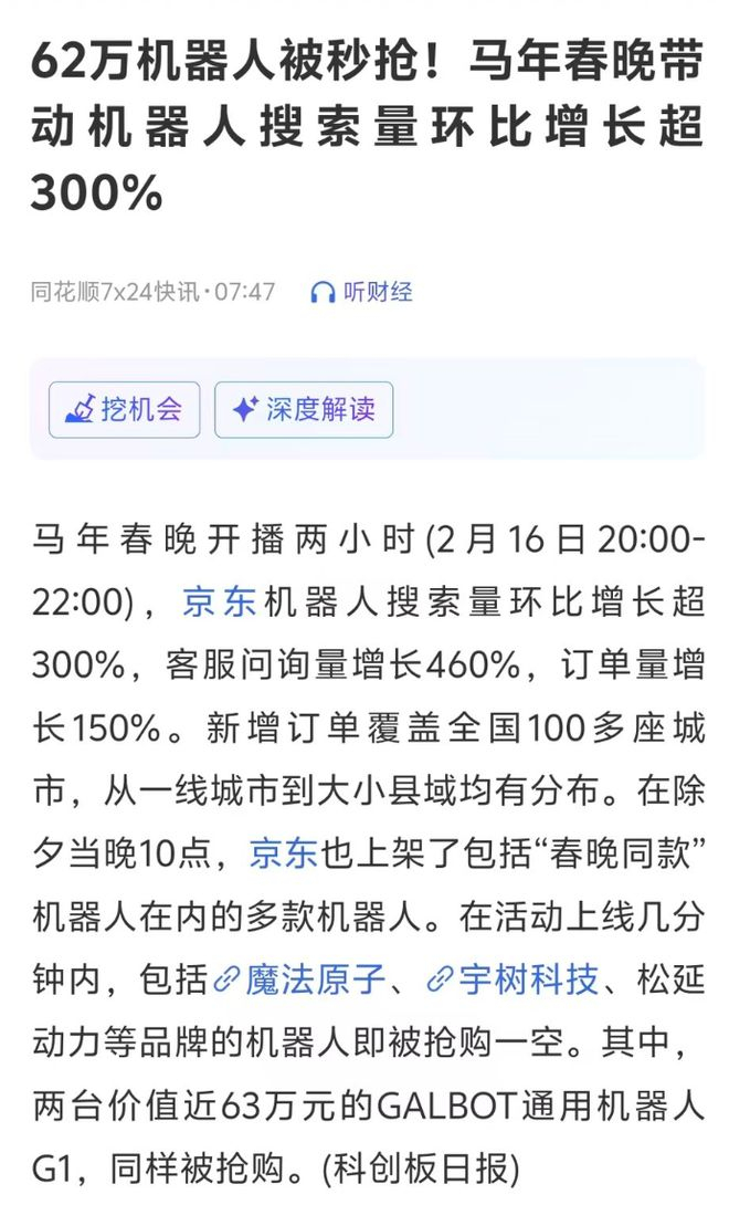 春晚开播2小时,京东机器人的搜索量就环比增长300%。