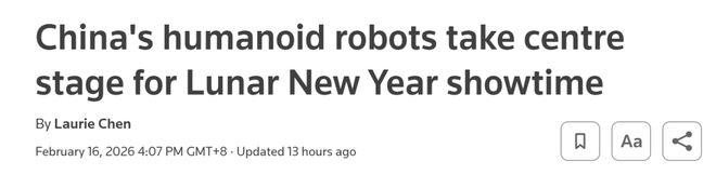 对于「机器人霸占2026春晚」这一现象,外媒专门写了一篇文章来分析。