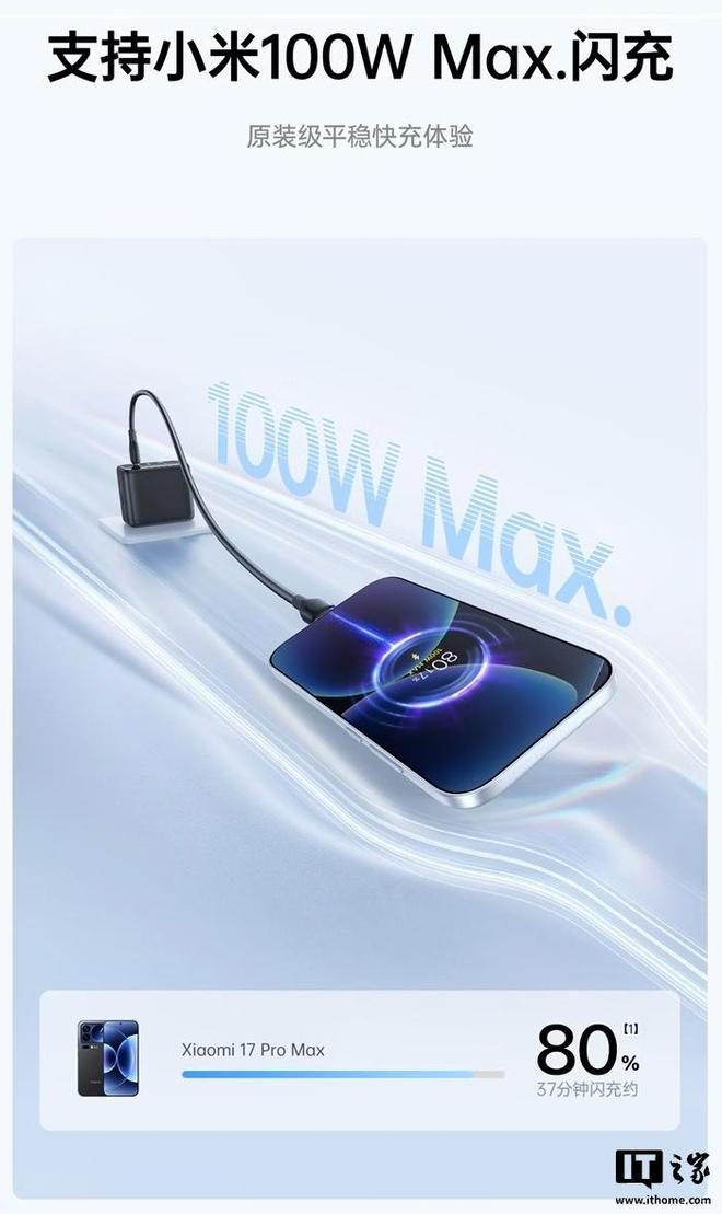 该充电头可选黑白双色,整体重量 205g,使用可折叠插脚,其中 USB-C1/C2 接口均至高支持 100W 输出,USB-A 接口至高支持 33W 输出。充电头支持小米 100W 澎湃秒充,同时兼容 PD / UFCS / PPS / SCP 协议。