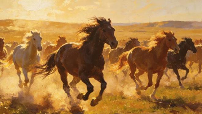万马奔腾出自北宋刘一止的诗句“万马奔腾山作阵”,将群山比作奔腾驰骋的万匹骏马,蔚为壮观,成为传世名句,拿来形容今日人工智能发展之盛况,尤其贴切。
