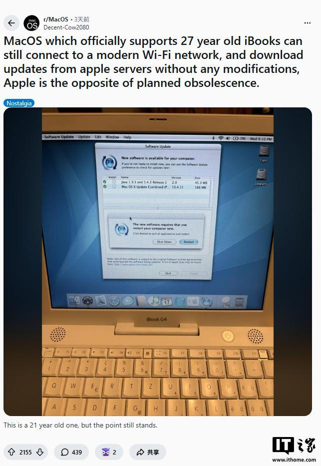 跨世纪兼容:苹果iBook G4发布23年后仍能连接服务器下载更新