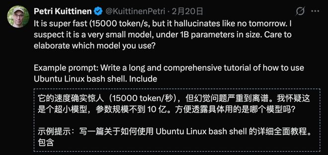 首先就是,虽然速度达到「光速」,但是小模型带来的幻觉问题无法避免。